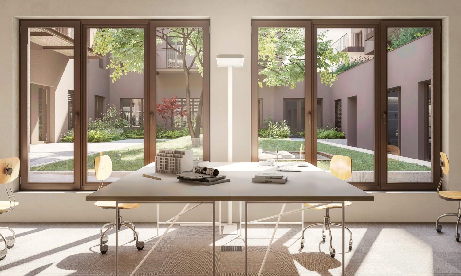 Es soll dadurch zum offenen Vernetzungsort werden – mit einem modernen Arbeitsumfeld in lebendiger Atmosphäre. Location dafür sind die hofseitig gelegenen Räumlichkeiten, die gewerblich oder als Office genutzt werden können.