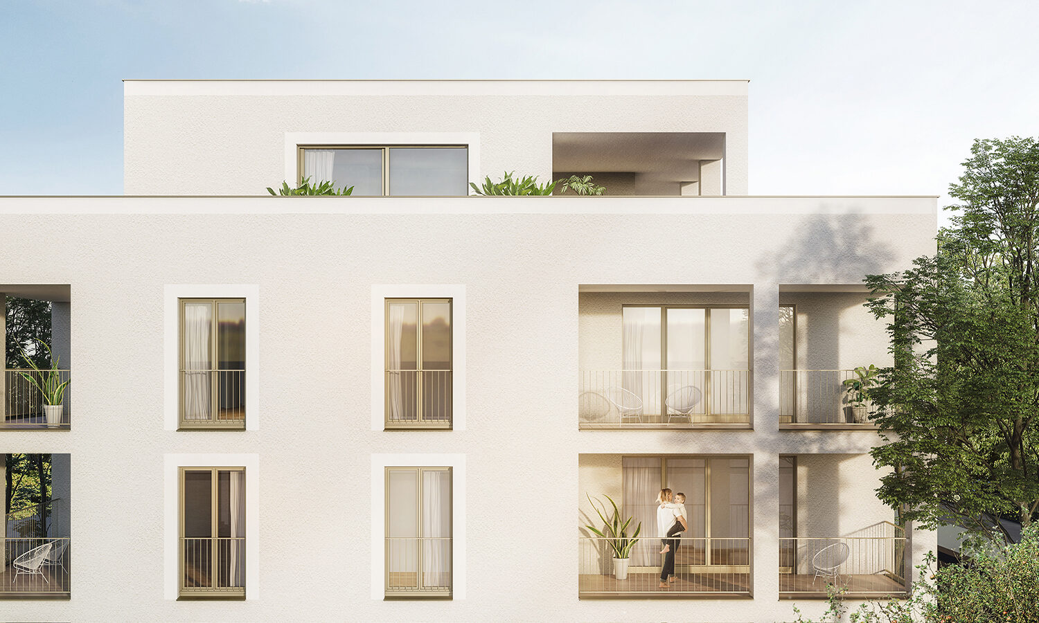 In bekannter MEGARON & Partner – Tradition entstehen, geplant durch das Architekturbüro PENTAPLAN, schöne Wohnungen mit großzügigen, überdachten und uneinsehbaren Außenbereichen.