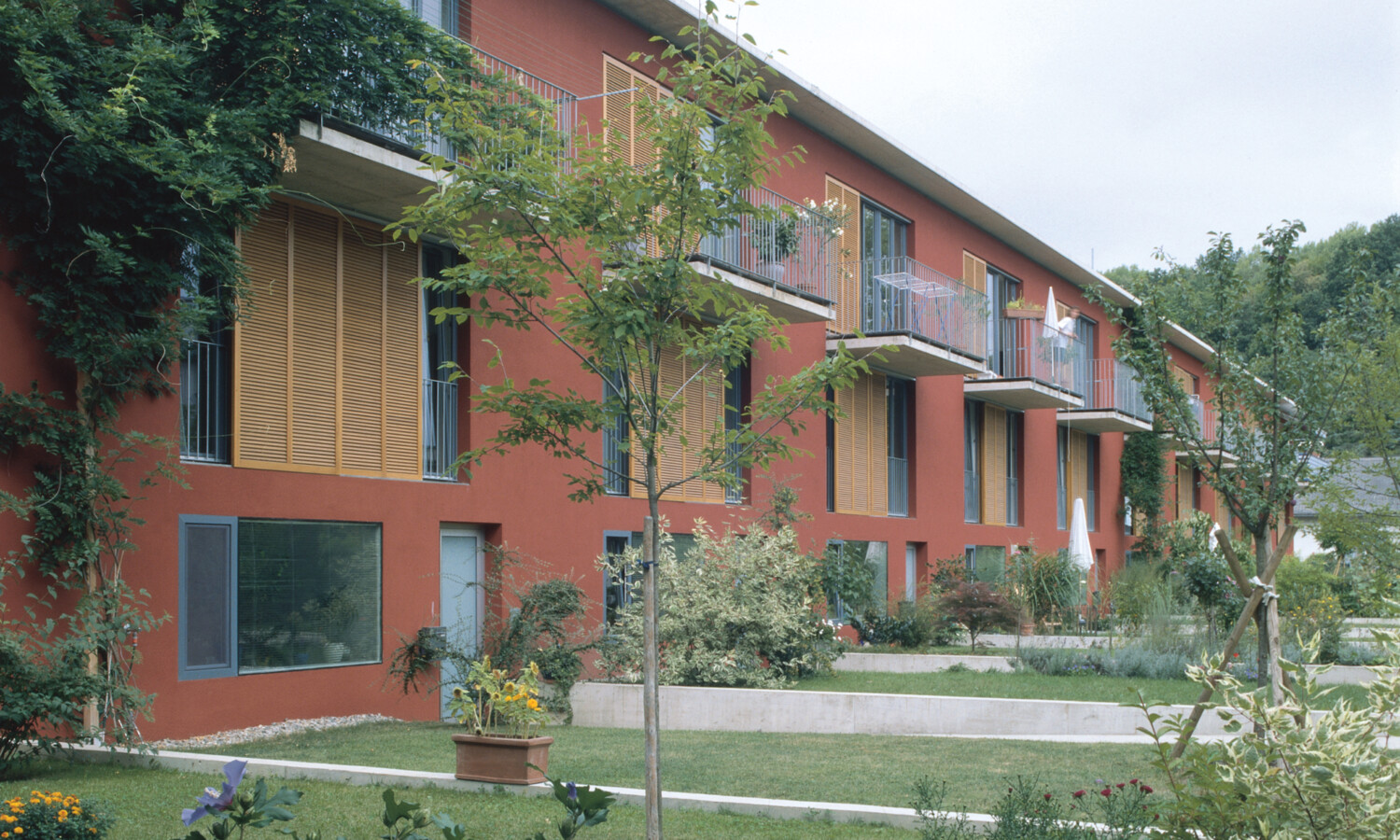- Wohneinheiten: 27, davon 24 dreigeschossige Atriumwohnungen